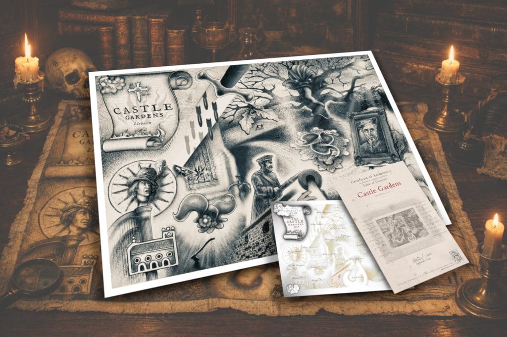 Step into a version of Castle Gardens you’ve never seen before. This is not just a map — it’s a visual excavation, a layered artwork that folds centuries into a single frame. Every path, structure, and symbol has been carefully placed to reveal hidden histories, lost stories, and overlooked details that most visitors walk past without ever noticing.